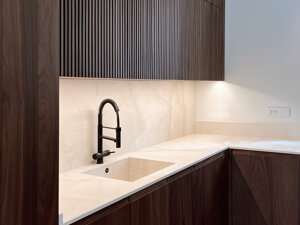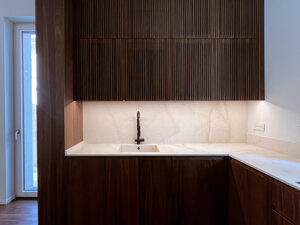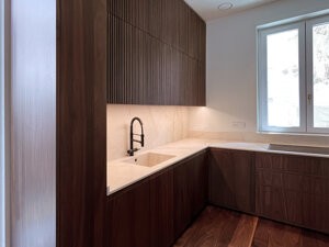 apertura con gola scavata direttamente nell'anta con finitura in essenza